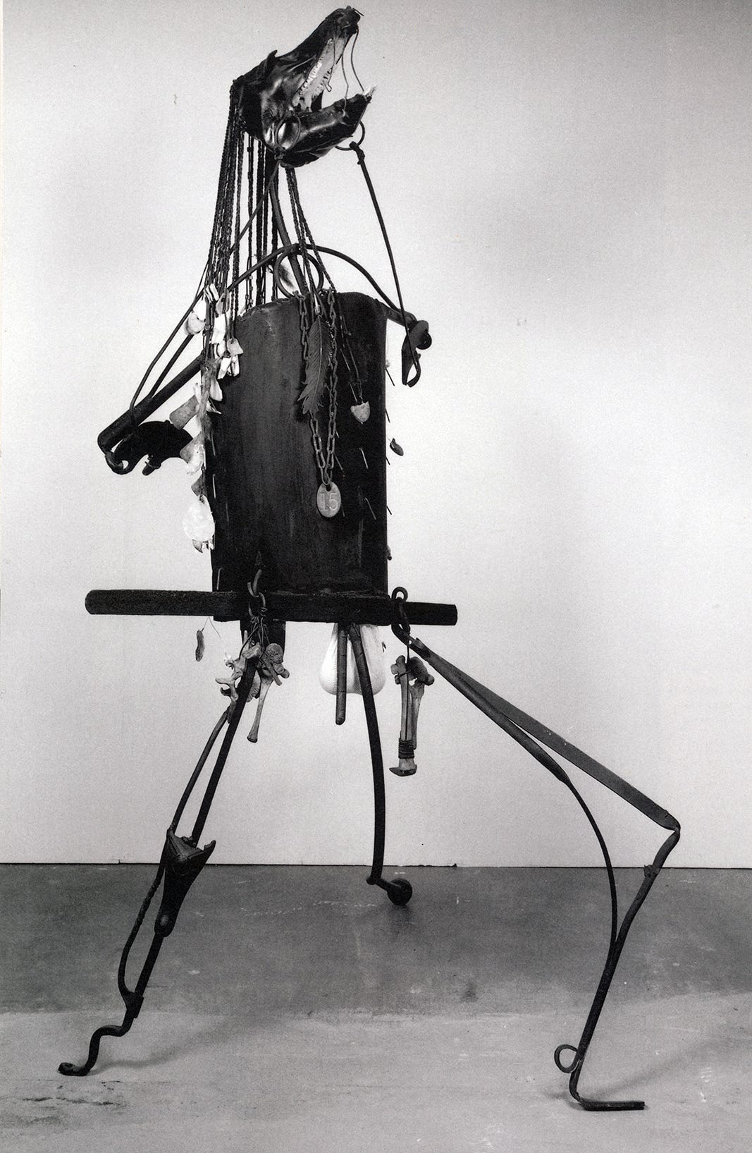 I was an Air Force lab tech and did autopsies and bagged bodies in Thailand […]. Yes, Back in the World Again is how it felt to come back. The pieces of bone, brass, shells braided in the creature’s hair and hanging from its belt are the tokens, mementos, souvenirs, transitional objects of our life. We all carry tokens with us to strange places for magical protection.2